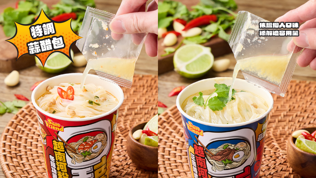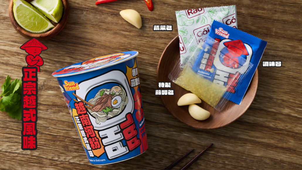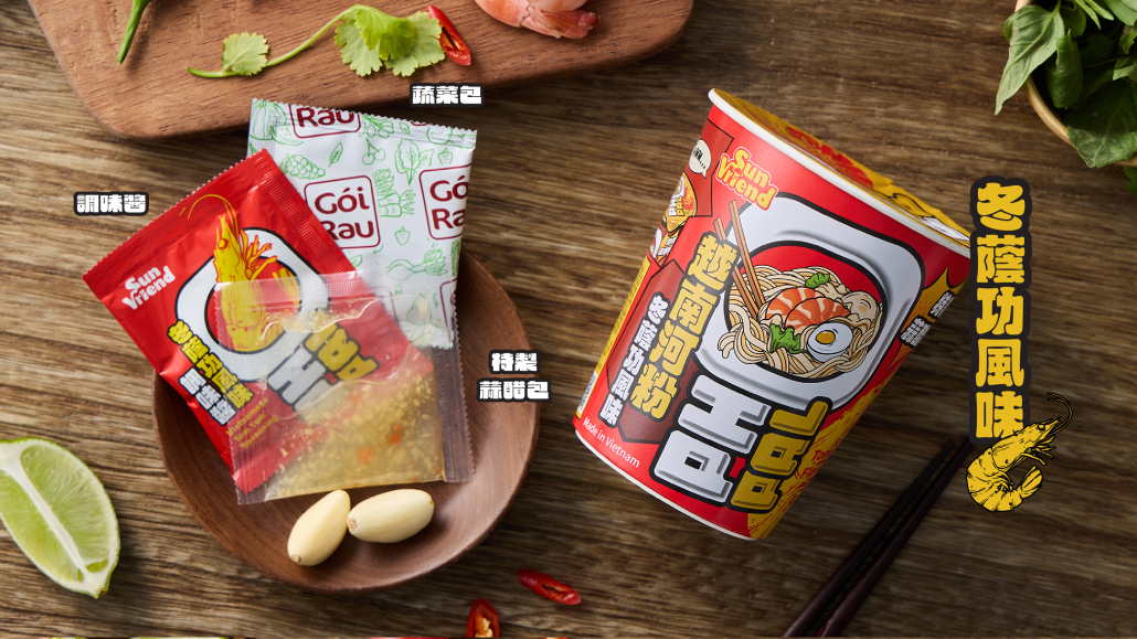 越南擁有深厚而多元的歷史文化,其飲食正是這份文化底蘊的最佳體現。以新鮮食材、香料運用與層次分明的風味聞名於世,越南美食展現出清爽卻耐人尋味的獨特魅力。SUNFRIEND 全新品牌「越友」,以越南當地嚴選優質食材與道地風味為核心,將最純粹、最貼近生活的越南美味,細膩呈現在消費者的日常餐桌上。此次首度推出正宗越式「牛肉風味河粉」及「冬蔭功風味河粉」兩款河粉杯麵,牛肉風味以牛肉湯頭為主軸,清甜溫潤、風味細緻;冬蔭功風味則以酸辣濃郁的湯頭表現出層次鮮明的異國香氣。兩款產品皆為正宗越南製造,呈現滑順河粉口感與貼近當地的湯頭風味。份量主打輕食設計、清爽不油膩,只要熱水沖泡即可享用,無論當作正餐、點心或宵夜都十分適合,為日常生活增添便利又美味的選擇。
